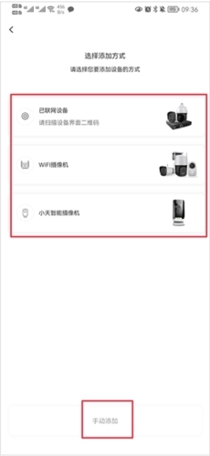2、选择添加方式,如WiFi摄像机