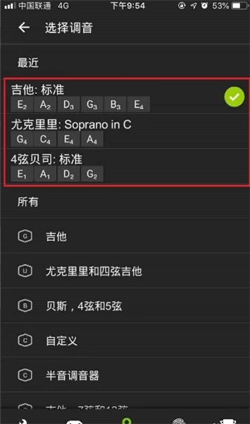 -包括降D、开放式、自定义调音、尤克里里琴调音等
