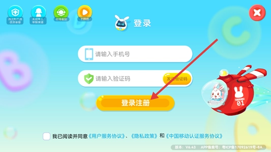 2、打开兔小贝abc进入家长验证环节,界面弹出紫色家长验证框提示请家长确认身份,输入用户个人手机号码短信验证码信息后进入。