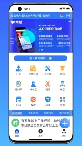 帮帮平台客户端是杭州奥帮网络科技有限公司开发的一款非常好用的企业管理软件,针对于广大服装公司与服装厂打造出更加智能化、数据化的管理服务,满足你的一切需求。在帮帮平台中还存在着许多的优质服务,你可以在这里去寻找自己需要的员工,无论是业务经理还是设计师,亦或是普工,都能去为你进行推荐的,如果你有需要的话,那就赶快试试吧!