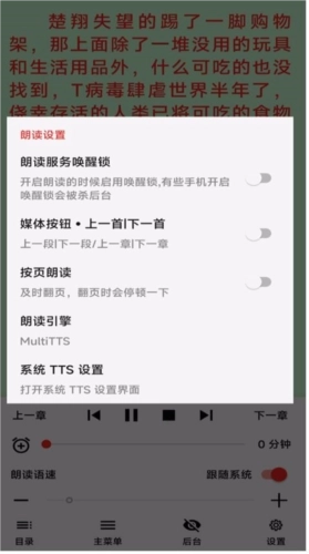4、之后在其他看小说的软件里,选择用系统默认的TTS引擎或朗读就行;
