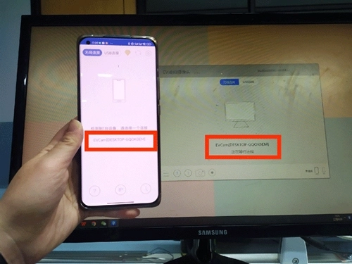 2、用手机搜索电脑设备,待连接成功后,电脑端即可实时查看手机摄像头传输的画面。