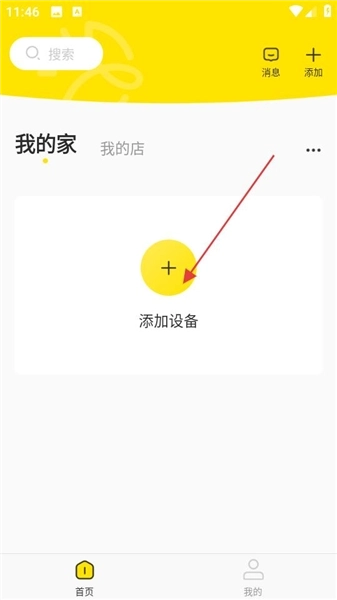 1、打开萤享云视频手机版,在首页我的家或我的店板块,点击添加设备按钮,进入设备添加流程,开启监控设备连接。