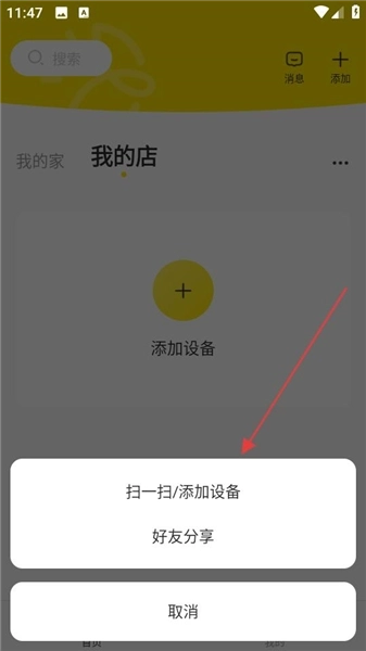 3、若在我的店添加,点击添加设备后选扫一扫添加设备,重复扫码步骤,也可通过好友分享添加,完成设备接入,实现远程监控。
