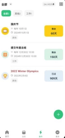 4、对事件设置提醒,能够随时了解到来的临近天数;