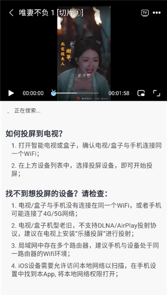 2.请确认电视与手机连接着同一个WiFi网络,只有这样才能顺利完成投屏操作。