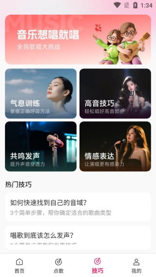 4、支持唱歌技巧的介绍,多种播放模式等都有。