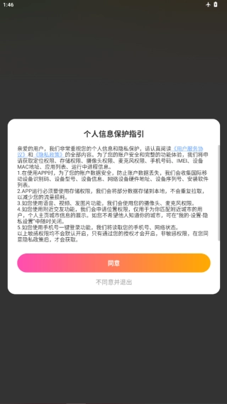 1、软件安装完成后打开,会弹出是否同意的提示,点击同意按钮即可进入注册界面;