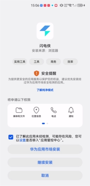 3、第三步,勾选“已了解此应用未经检测……”这一项,接着点击“继续安装”。(若弹出安全提醒,无需担心)
