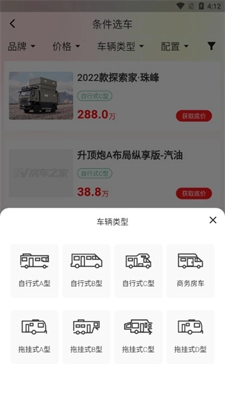 1、在商城挑选各类房车,为自驾出行带来便利,提升出行品质;