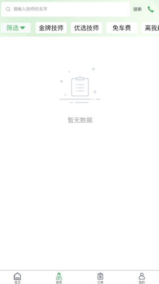 3、技师搜索功能可依据技能、评分等条件进行筛选,从而匹配出最合适的人选。