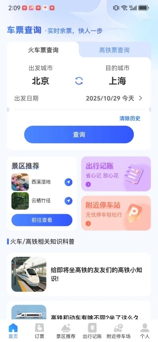 火车高铁票智查是一款支持数据同步的票务查询工具,用户仅需输入目的地与出行日期,就能即时查看最新的列车班次、余票数量以及票价详情。此外,系统还配备了购票指引和出行相关资讯,帮助用户无需出门就能高效安排行程,从此不再有排队买票的困扰。
