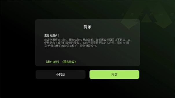 1、并安装“极速云游”,首次打开时请查看并同意隐私政策与用户协议,完成初始化设置。