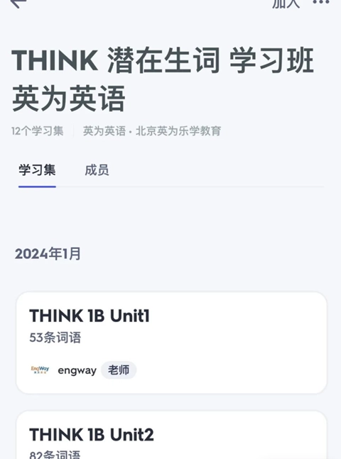 1、输入关键词“think英为英语”,找到“THINK潜在生词学习班英为英语”班级。