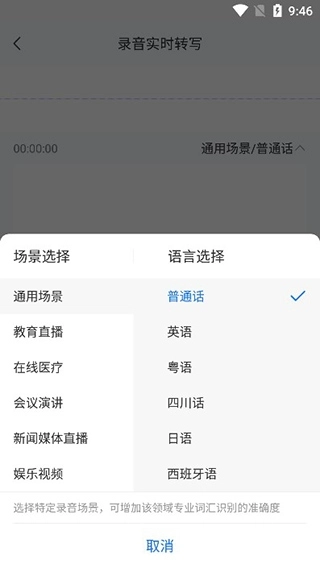 2、在录音实时转写中,输入语音便可转换成文字了;