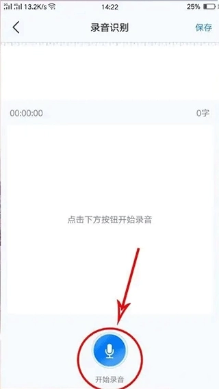 2、进入功能界面后,点击下方的蓝色按钮以实现语音转写功能