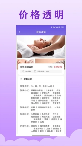 2、多样化服务,满足个性化需求:从基础的按摩推拿到特色的精油SPA,我们提供丰富多样的服务项目,满足不同用户的需求和喜好。