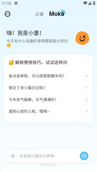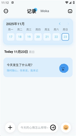 MOKA日记是一款实用的日记本软件,提供文字、图片、语音及情绪标签等多样化记录方式,帮助用户轻松捕捉日常点滴与心情变化。系统会自动统计情绪数据并生成趋势图表,让你直观了解自身情绪波动,聊天助手,支持在对话中随手记录,让书写更便捷、更贴心。