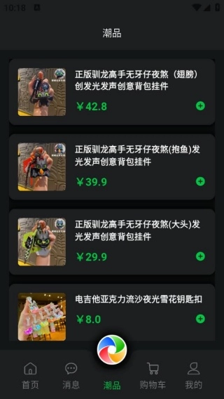 3、进入到潮品板块,有背包挂件,钥匙扣等商城提供,购买更加实惠。