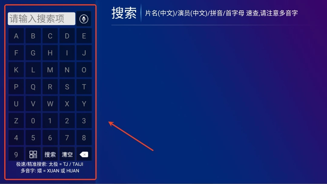2.在左侧输入影视剧名的首字母。