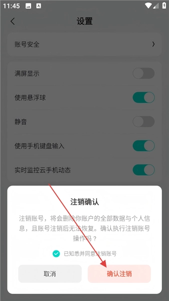 4、勾选同意协议,点击【确认注销】,完成账号注销。