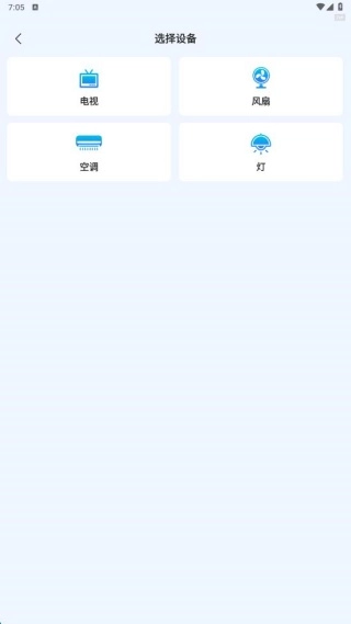 2、在选择设备页面,确定家电产品类型。