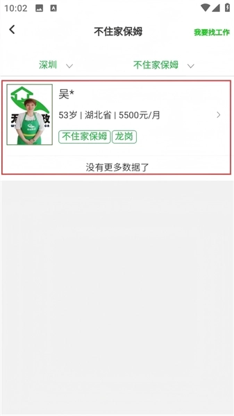 1、在首页点击【不住家保姆】,进入不住家保姆列表页面。