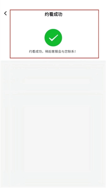 4、提交后将显示“约看成功”,稍后客服会与您联系,完成约看流程。