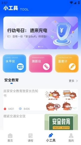 安全生产培训作为专业的安全生产学习平台,包含电气、消防、企业培训等多样课程,借助系统化的知识科普,助力用户构建全面的安全认知体系。此外,平台整合了水平仪、测距仪、温度计等实用工具,方便用户随时排查作业隐患,从而达成从理论到实践的全方位安全保障。