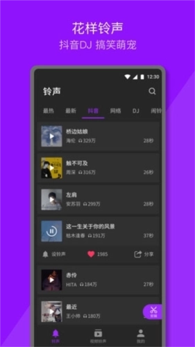 1、丰富多样的铃声类别,涵盖了抖音热门、网络流行、动感DJ以及趣味搞笑、萌宠可爱等多种类型的铃声;
