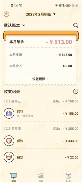 1、简洁的明细页面,一眼掌握收支情况。