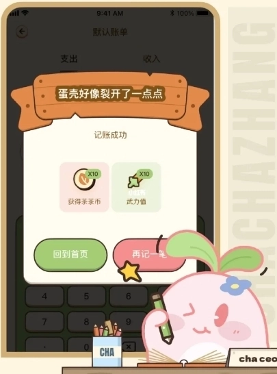 1、我们每记一笔账,就可以获得茶茶账的茶茶币哦,因此大家要记得多记账呢。
