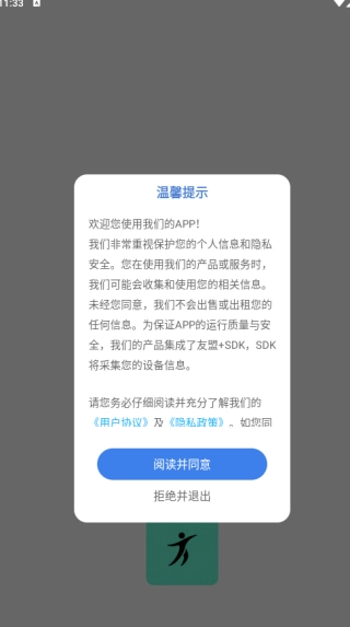 使用前需完成应用程序的安装或注册,并在线确认接受用户服务协议。