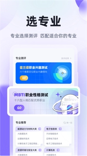 3、权威专业测评:融合霍兰德专业兴趣测试,全方位剖析你的性格特质与能力优势,精准锁定最适配的专业方向。