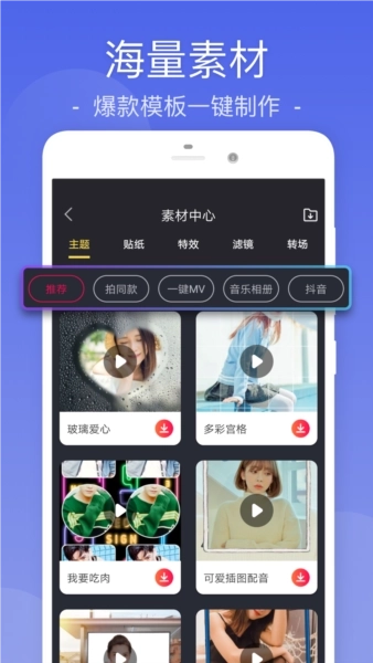 vlog、潮流热门、微电影、旅游、美食、节日特辑等海量热门题材模板任你选择,让你自由进行视频制作,生成意图拥有的视频成效。