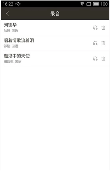 录音界面显示点歌机中所有录音歌曲,还可进行试听和删除操作。