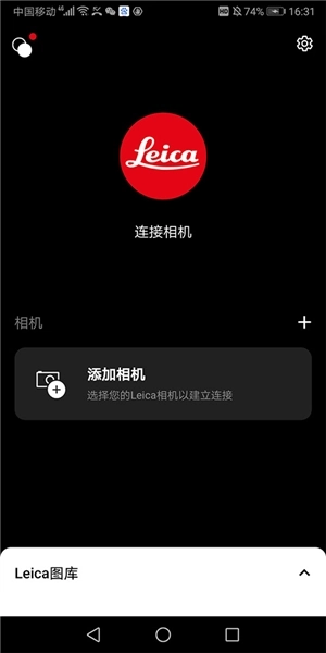 1、在手机上打开已安装的徕卡相机应用,使用徕卡账号完成登录,进入主页面后点击【添加相机】选项。