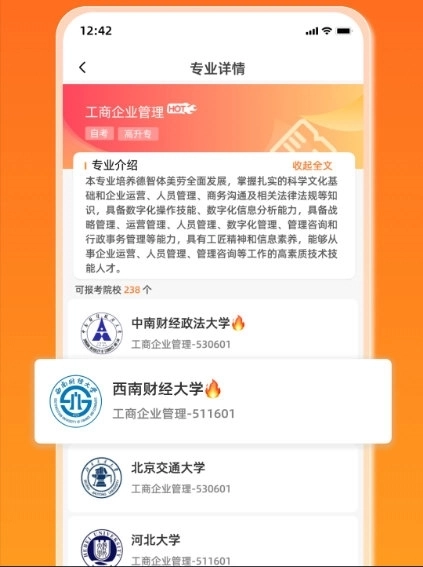 支持用户查看所需的院校信息,便捷选择院校的专业。