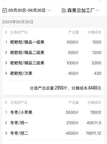 支持用户进行分选加工操作,能够对所需原料的产出信息一键录入,并完成规格分选流程。