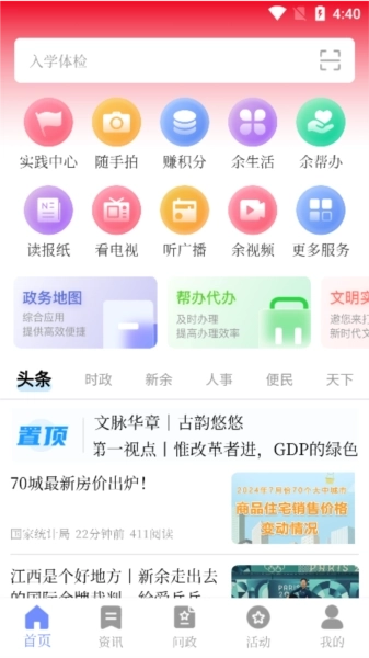 这是一款专注服务新余地区的综合新闻生活服务类软件,用户可通过平台实时获取本地及国内外的热点新闻资讯。平台支持在线看电视、收听广播、阅读报纸和浏览视频等多种功能,丰富的新闻呈现形式让您每日都能收获新知。此外,软件还提供众多便民服务,助力用户践行文明生活方式,一同探索城市生活的更多精彩之处。