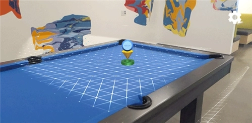在图1中,InstantPlacement处于停用状态,同时Surface几何图形也未进行定义。在台球桌右侧的地板上,有四个小蓝点的对象呈现出翻转的状态,而该对象的姿态同样未被定义。