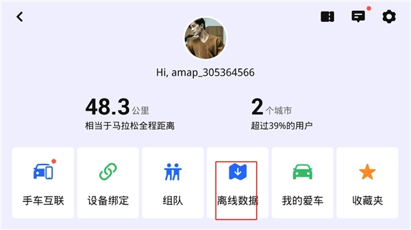 2、其中包含手车互联、设备绑定、组队、收藏夹等功能,接下来我们点击离线数据;