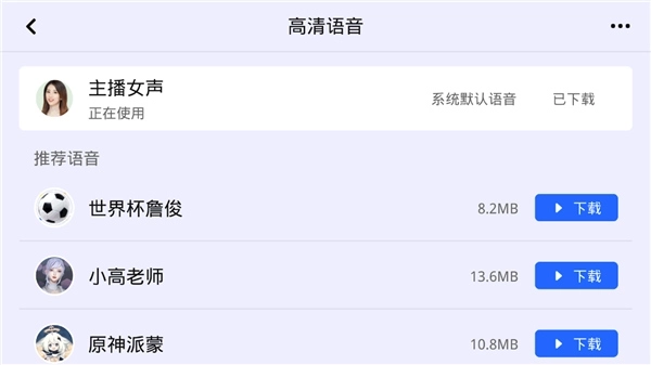 4、这里为用户准备了大量高清语音资源,用户可根据喜好选择并点击相应的语音类型;