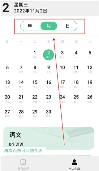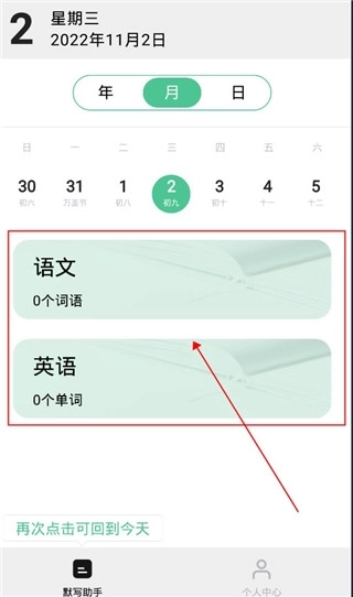 1、打开软件进入主界面后,点击对应位置设置好年月日,以便记录孩子每日的默写情况。