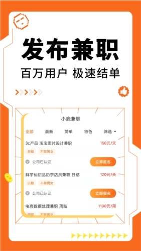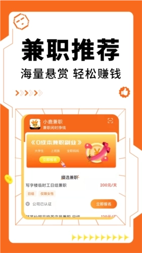 闲下来想通过手机兼职赚钱,就来小鹿兼职吧!这里兼职轻松,结算速度快,还有各种各样的赚钱任务可以选择。
