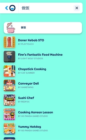 7、比如“做饭”这个关键词,搜索后能看到不少烹饪类游戏,点击相应的游戏图标就能直接开始游玩。