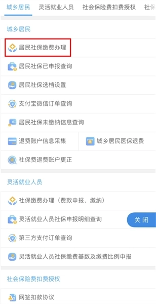 第二步:按顺序点击【个人社保费业务办理】选项,接着点击【居民社保缴费办理】,即可进入缴费页面。