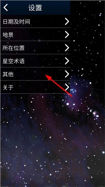4、将页面停在织女星附近后点击左下角的功能键,打开左上方的工具栏,点击工具栏中的其他;