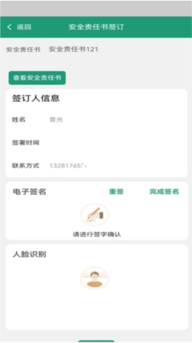 4.用户也能够选择进行安全责任书的签订操作,借助电子签名、人脸识别等方式完成签订。