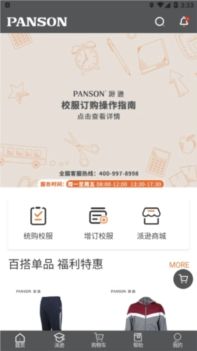 2,多样化选择:用户除了能购买学校校服外,还能在“派逊商城”挑选自己喜欢的服装、配饰等商品。